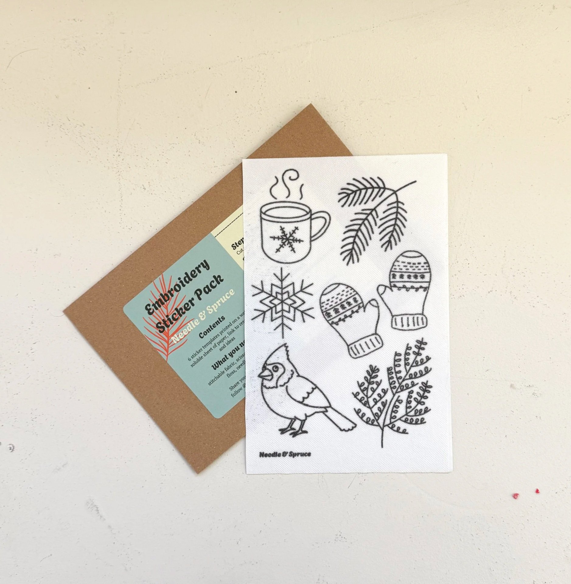 Each DIY Embroidery Sticker Pack includes 6 sticker templates printed on a water soluble sheet of paper